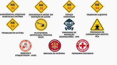Os treinamentos das Normas Regulamentadoras são de extrema importância para as empresas e seus colaboradores. Trazemos nos nossos treinamentos todo o conhecimento técnico necessário para seus colaboradores de forma teórica e prática, com isso seus colaboradores se capacitam para a realização das suas atividades de uma forma mais segura. Ministramos treinamentos presenciais, semipresenciais e online. E adequados as necessidades da sua empresa.